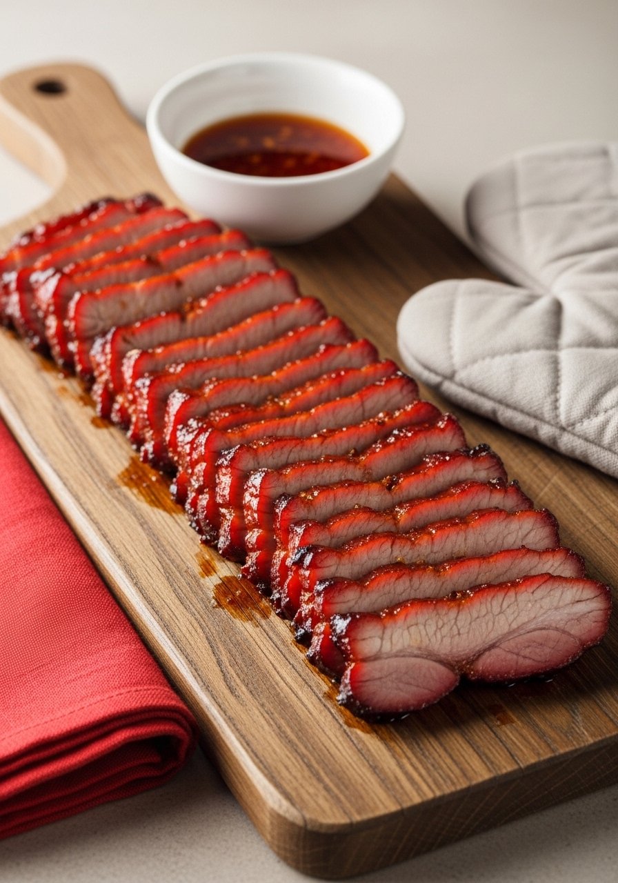 Slice and serve over rice or in buns with cucumber. Store slices in airtight containers for 3–4 days. Reheat gently to avoid drying.