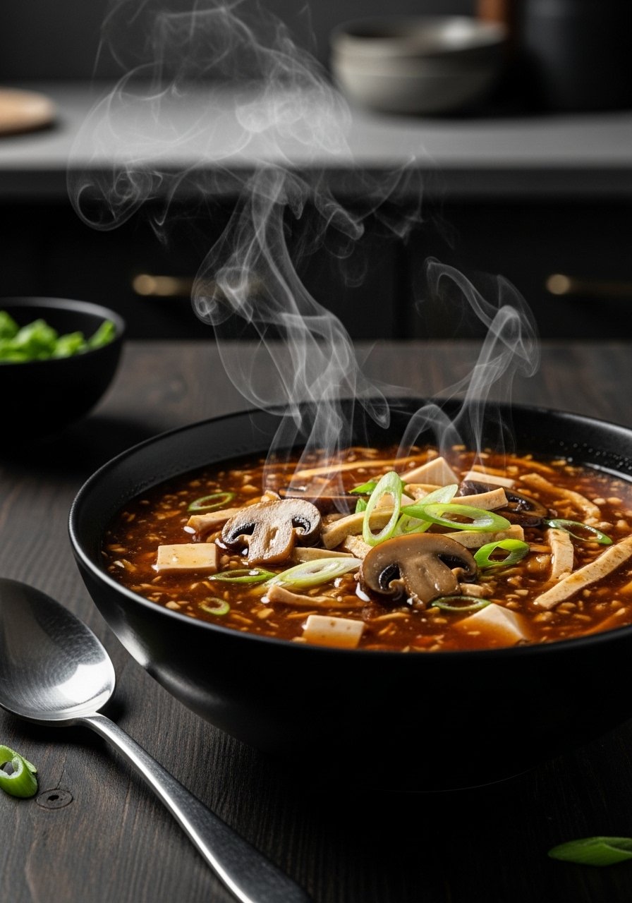 Hot and sour soup balances tanginess and heat without expensive ingredients. Silken tofu, mushrooms, and an egg swirl add texture while pantry staples build depth.