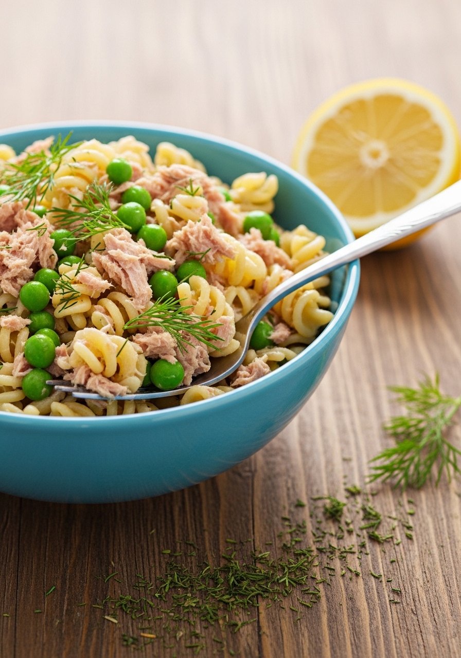 Pasta stretches tuna into a hearty, filling salad that feeds a crowd. This version is creamy with bright dill and tender peas—comforting and satisfying. If you want an easy potluck dish or bulk lunches, this is a go-to.