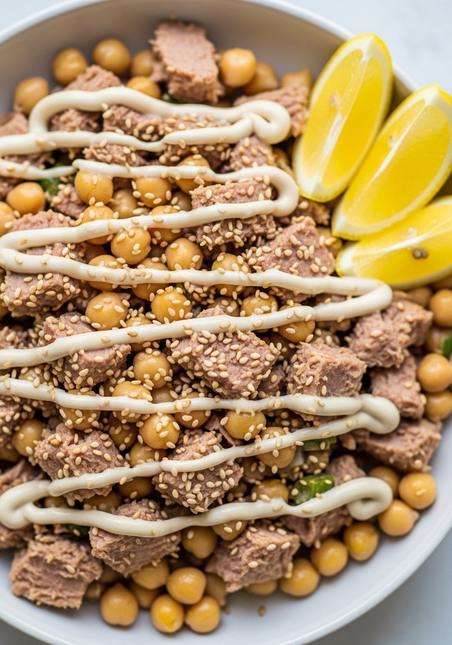 If you love a little heat, this spicy sriracha tuna salad wakes up simple canned tuna with chili, lime, and crunchy slaw. The texture is crisp and saucy—perfect for wraps or tacos. Fans of bold, zesty flavors will crave this.