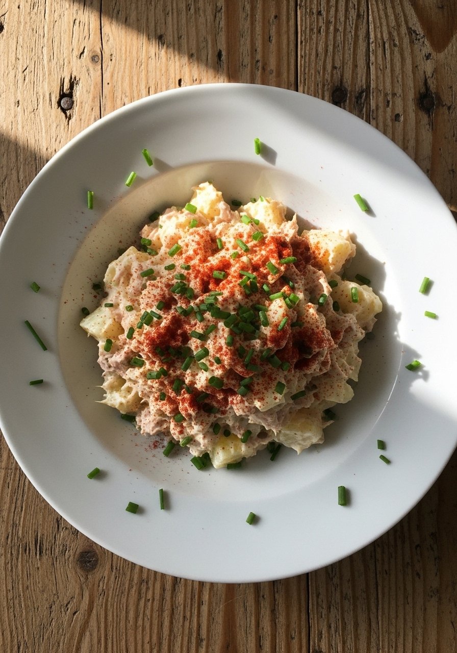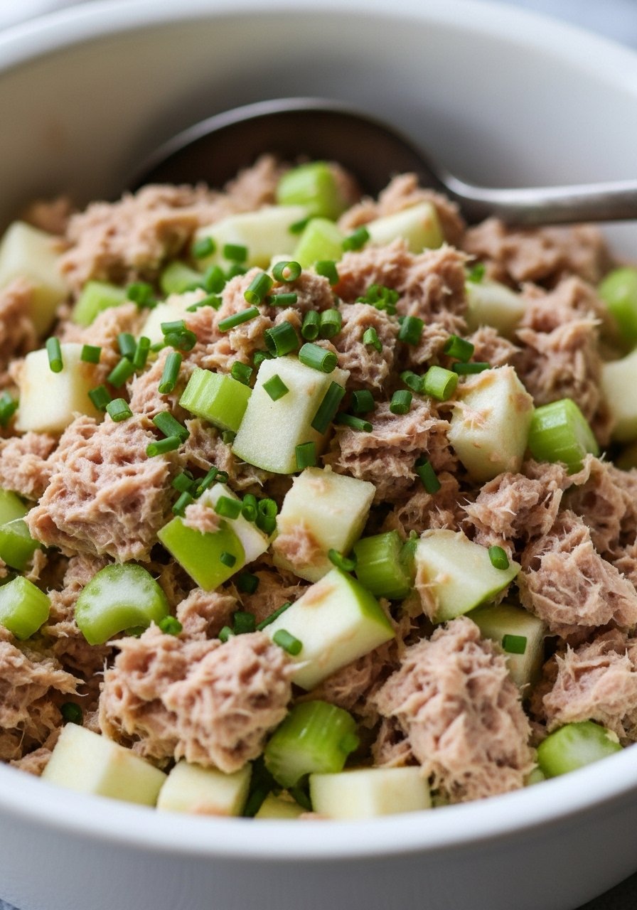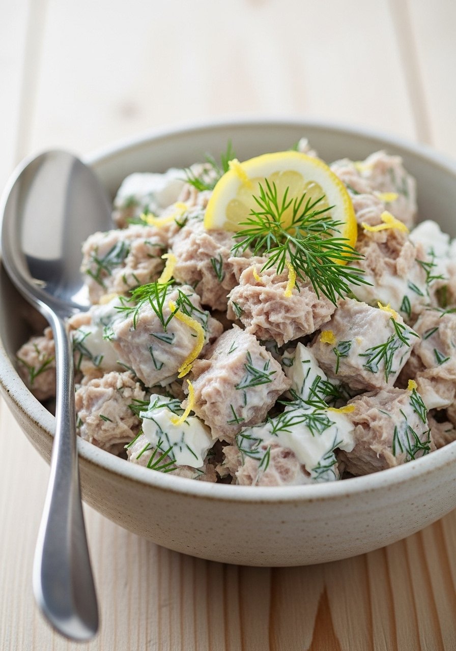 This is the tuna salad everybody remembers—creamy, tangy, and simple. It highlights flaky tuna with crunchy celery and bright lemon, perfect for sandwiches or salad bowls. If you love straightforward comfort food, this one’s for you; it smells like home and tastes fresh.