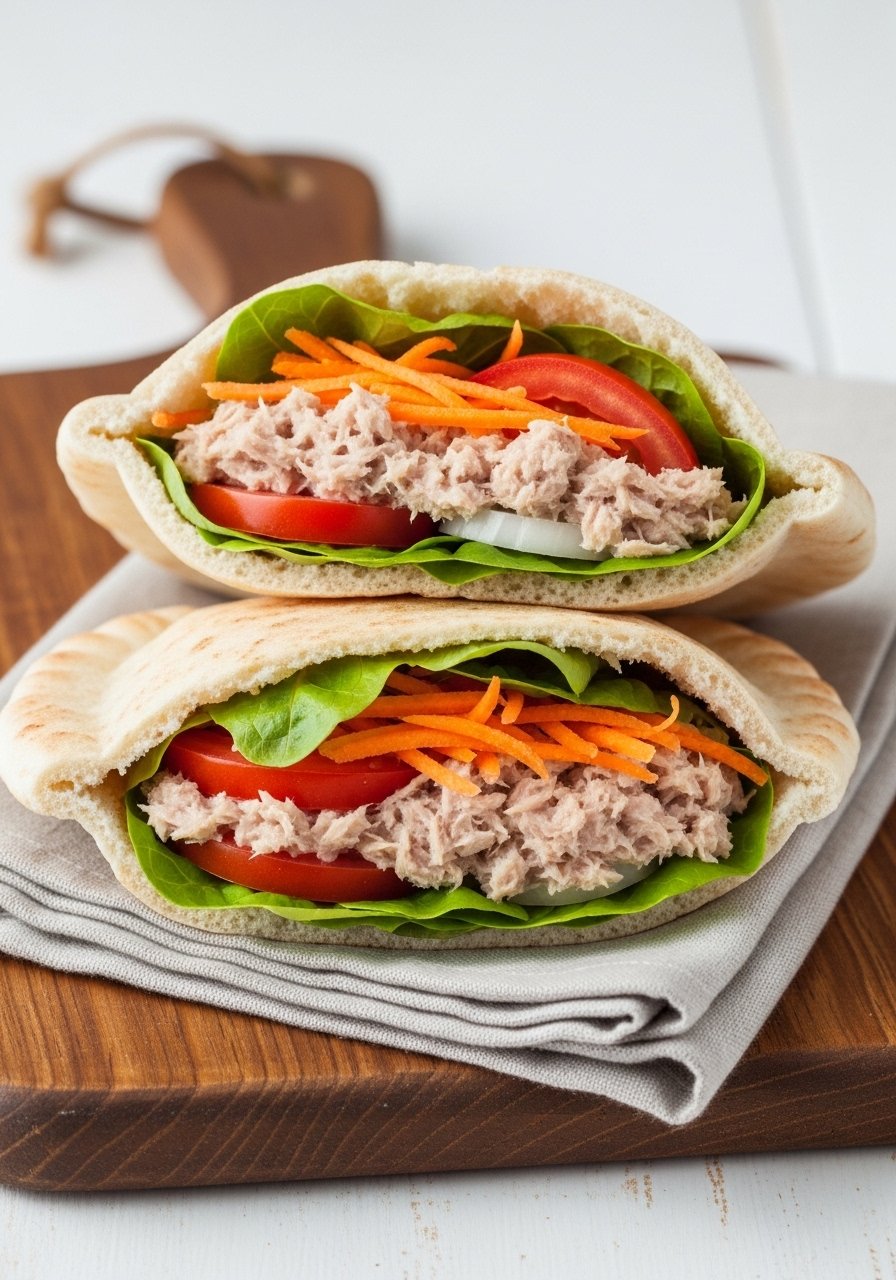 - Fill each pita with lettuce and a generous scoop of tuna mixture.