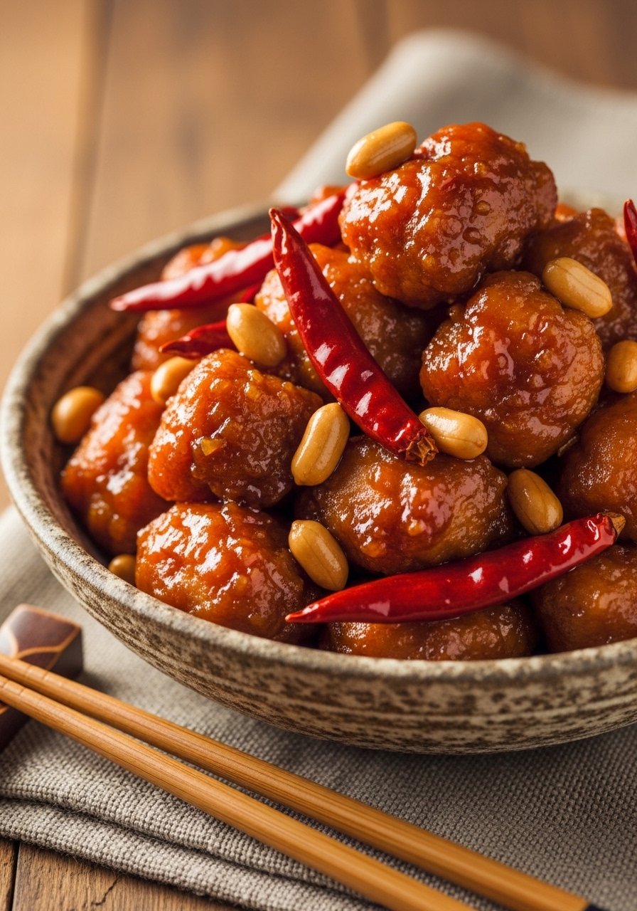 Crispy chicken nuggets coated in a tangy-sweet-spicy glaze—that’s General Tso’s. The key is a light cornstarch batter and frying at the right temperature so pieces stay crisp under sauce. An instant-read thermometer helps keep oil at 350°F.