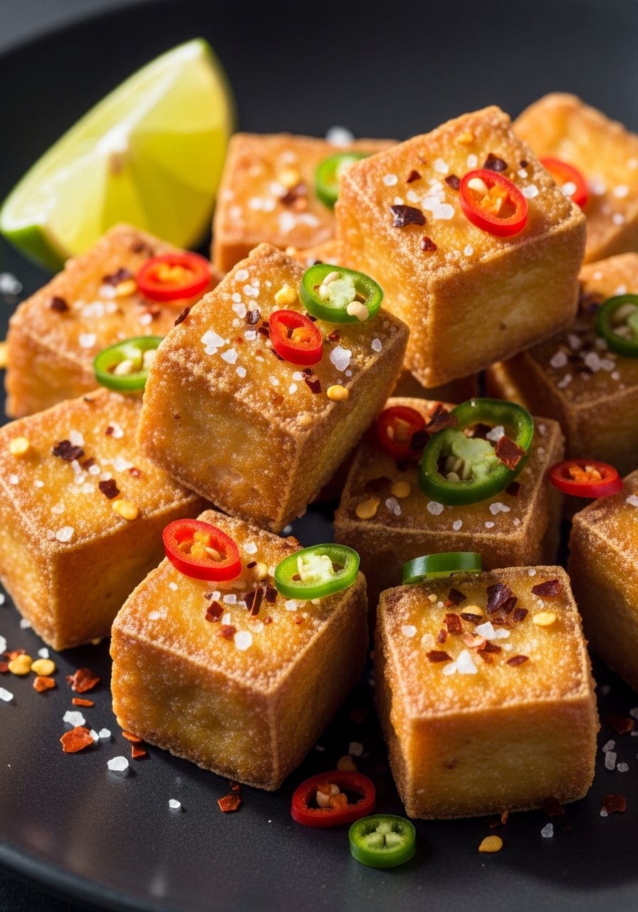 This vegetarian favorite features ultra-crispy tofu tossed with aromatic salt, pepper, and chilies. An air fryer or oven can crisp tofu without deep frying.