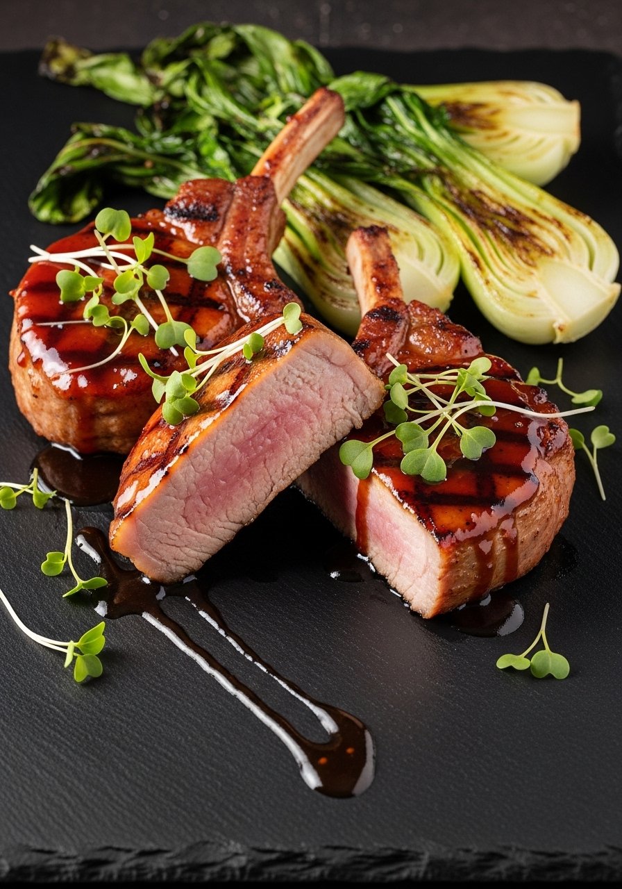 These bone-in pork chops get a quick brine and a sticky hoisin glaze for a weeknight-ready dish with a glossy finish. The glaze caramelizes on the grill or skillet, giving crisp edges and juicy centers. You’ll notice sweet tang, umami hoisin, and a punch of garlic. I grill them, but a hot cast iron skillet works great for searing.