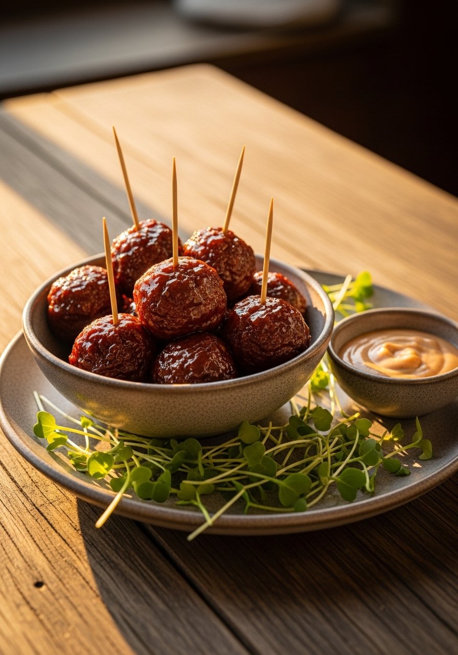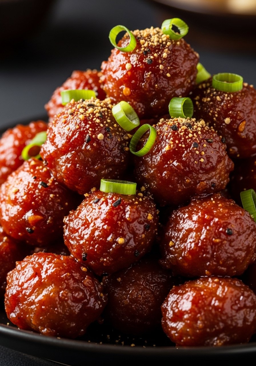 4. Toss baked meatballs in glaze until glossy.