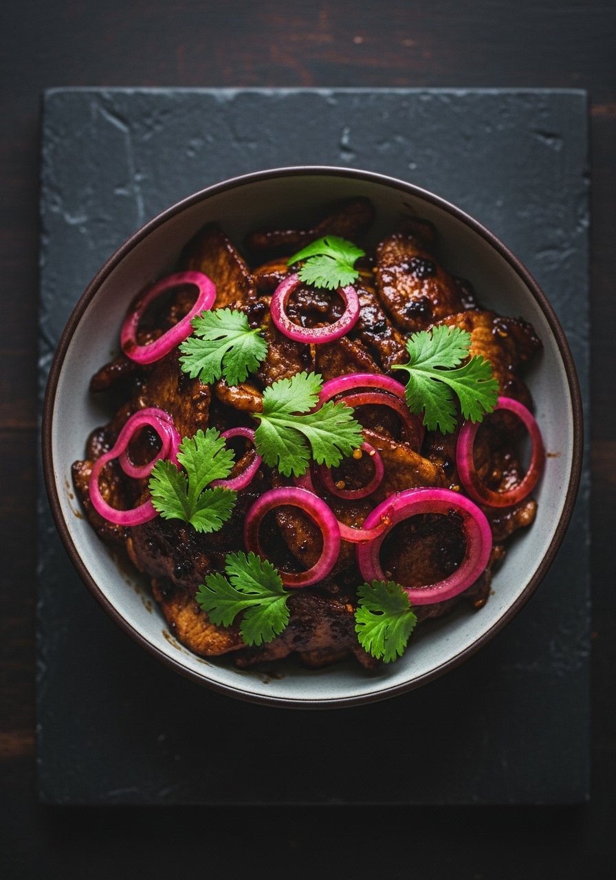 Char siu is the poster child of sticky glazed Chinese pork recipes. It’s sweet, savory, and lacquered with that signature red-brown shine. The pork shoulder roasts until edges are caramelized and the interior stays tender and juicy. Fans of BBQ and Chinese takeout will adore this one; it smells of honey, five-spice, and roasted pork. I like to use a digital kitchen thermometer to nail the internal temp.
