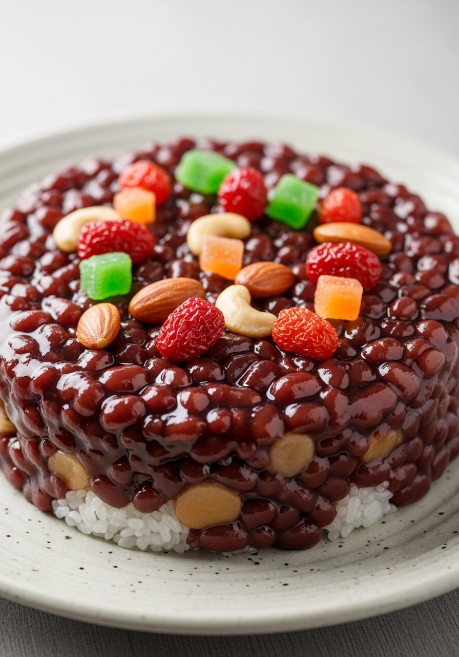 Eight-treasure rice is a festive sticky rice dessert studded with candied fruits, red bean paste and nuts. Sweet, chewy and celebratory.