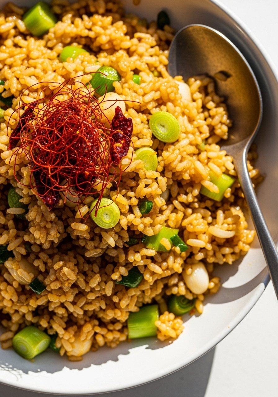 This Yangzhou fried rice is the Chinese rice recipes staple—salty-sweet diced ham, plump shrimp, soft scrambled egg and firm peas. Texture is everything: fluffy grains with separate kernels and charred edges from high heat. Busy cooks and picky kids both love it.
