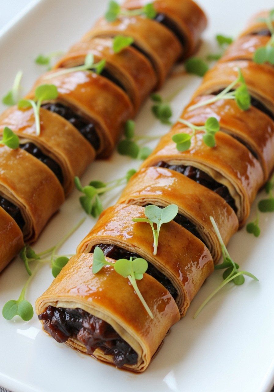 - Brush with vegetable oil, sprinkle scallions, a pinch of salt, and five-spice, then roll into a log and coil into a round.