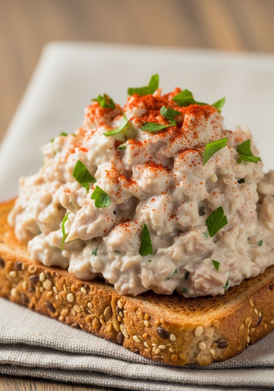 Spoon onto toasted bread, stuff into croissants, or serve over mixed greens. Garnish with a sprinkle of smoked paprika and extra parsley. Store leftovers in airtight food containers for up to 3 days. Great for picnic sandwiches or packed lunches.