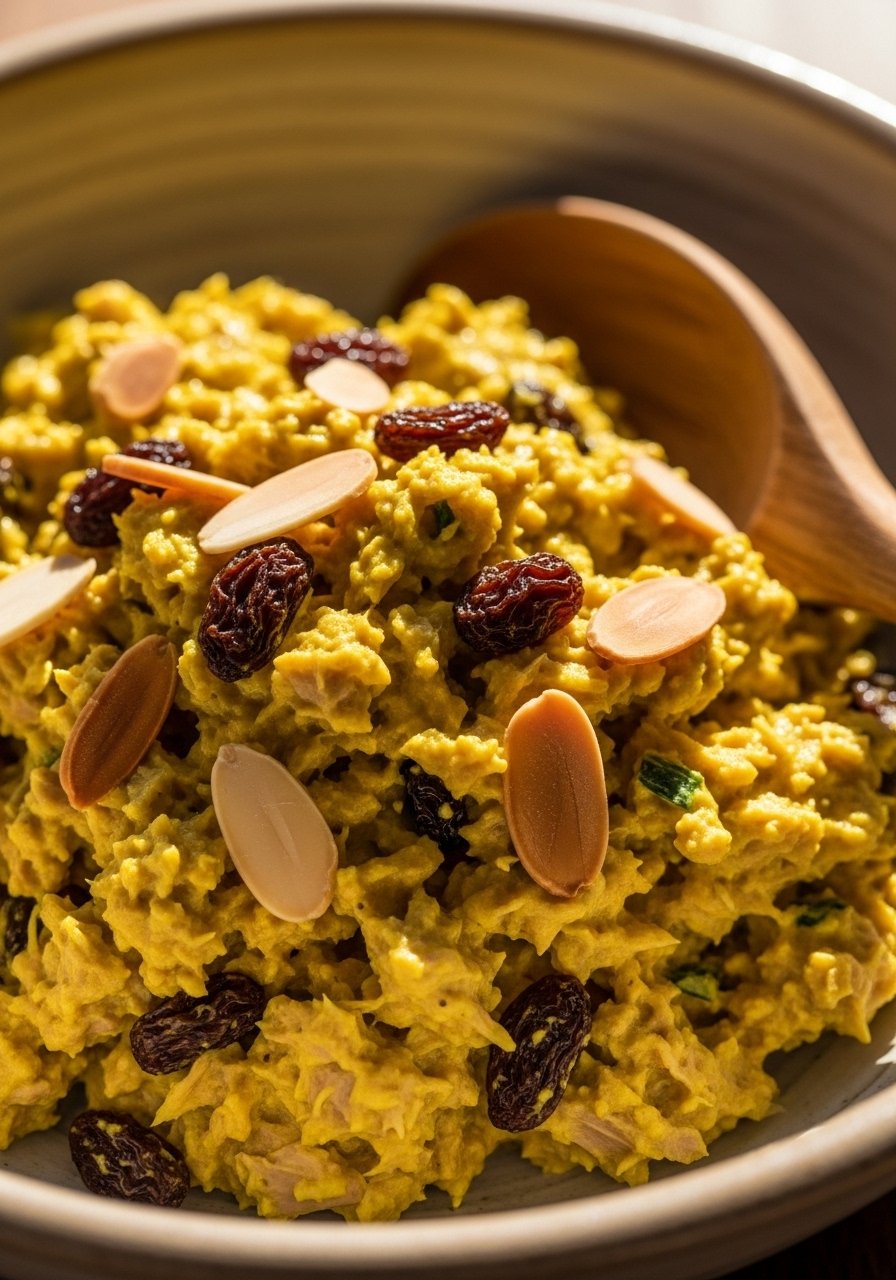 This version uses a green goddess–style dressing loaded with herbs and avocado for a bright, creamy easy tuna salad. It’s herbaceous, silky, and great on crostini or salads.