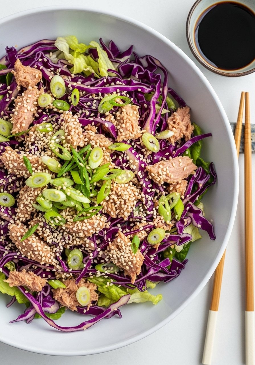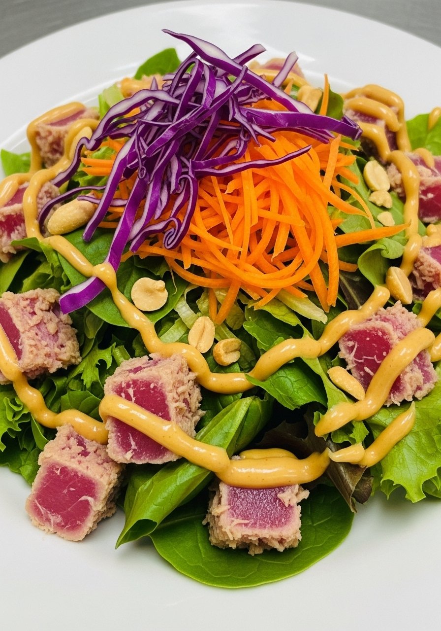 A creamy peanut dressing gives this easy tuna salad rich, nutty flavor and Southeast Asian vibes. It’s bold, slightly sweet, and pairs well with crunchy veggies.