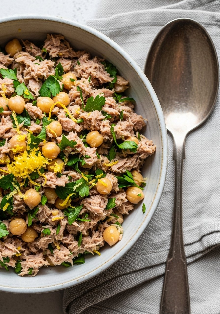 Chickpeas add fiber and body to this easy tuna salad, making it great for post-workout meals or filling lunches. Lemon and parsley keep it fresh and bright.