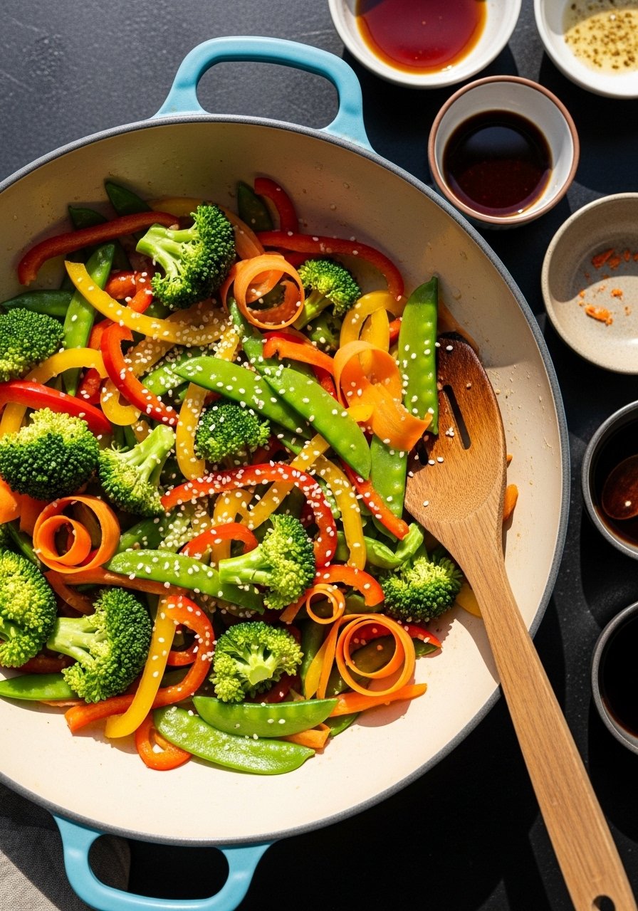 This speedy stir-fry celebrates crisp-tender vegetables and a savory garlic-ginger sauce. It’s flexible—use whatever is in your crisper. The technique keeps veggies vibrant and slightly crunchy, so you get texture and freshness in every bite.