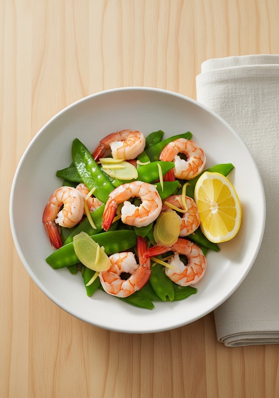 This dish is quick, light, and cooks in minutes. The ginger and a splash of rice wine really highlight the sweet shrimp and crisp peas. It’s fast enough for busy evenings and elegant for guests.