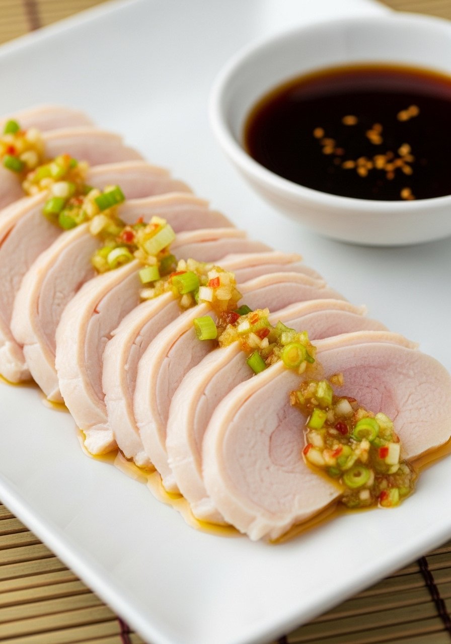 Serve on a chilled platter with steamed dumplings or as a side to grilled fish. Use a slotted spoon to lift tofu without breaking. Store in airtight containers up to 24 hours; texture is best fresh.