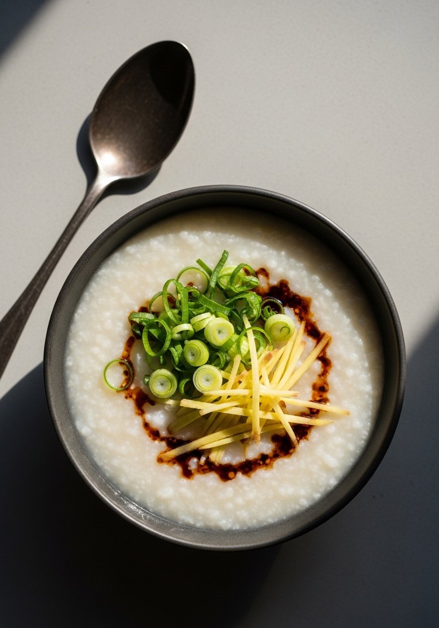 Congee is comforting, gentle on the stomach, and a perfect canvas for light toppings. This version keeps things simple and fragrant with ginger and scallion.