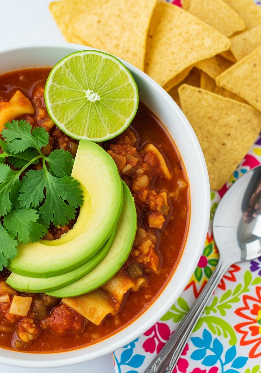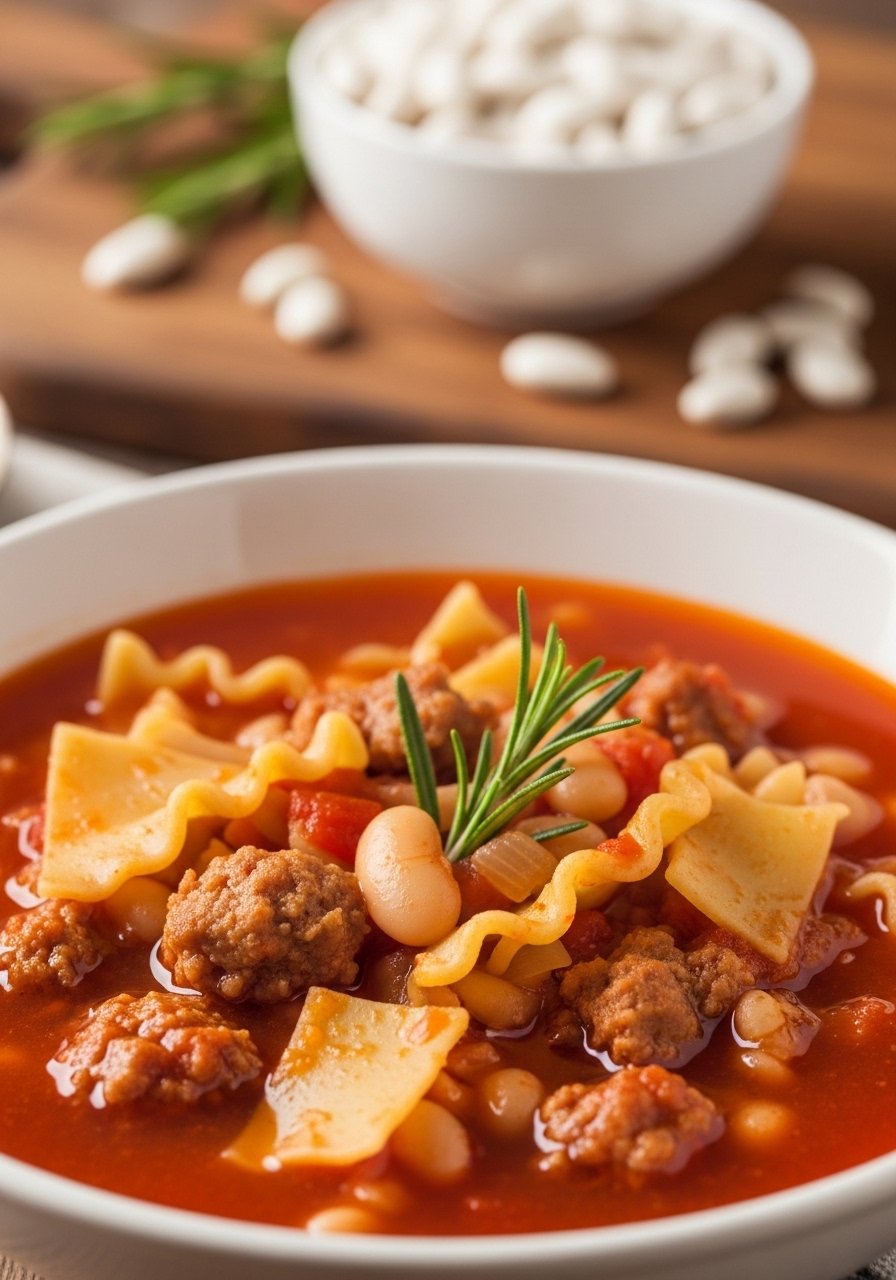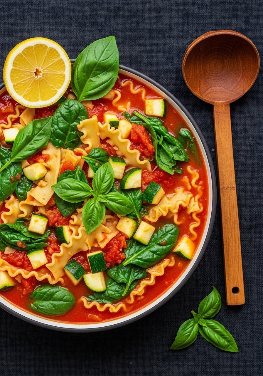 This version keeps the traditional beef-tomato-herb trio but lightens it using lean turkey and whole-wheat noodles. The broth is rich, tomato-forward, and flecked with oregano and basil. It tastes like lasagna in a bowl—cheesy, herbaceous, and comforting—perfect for family dinners and picky eaters.
