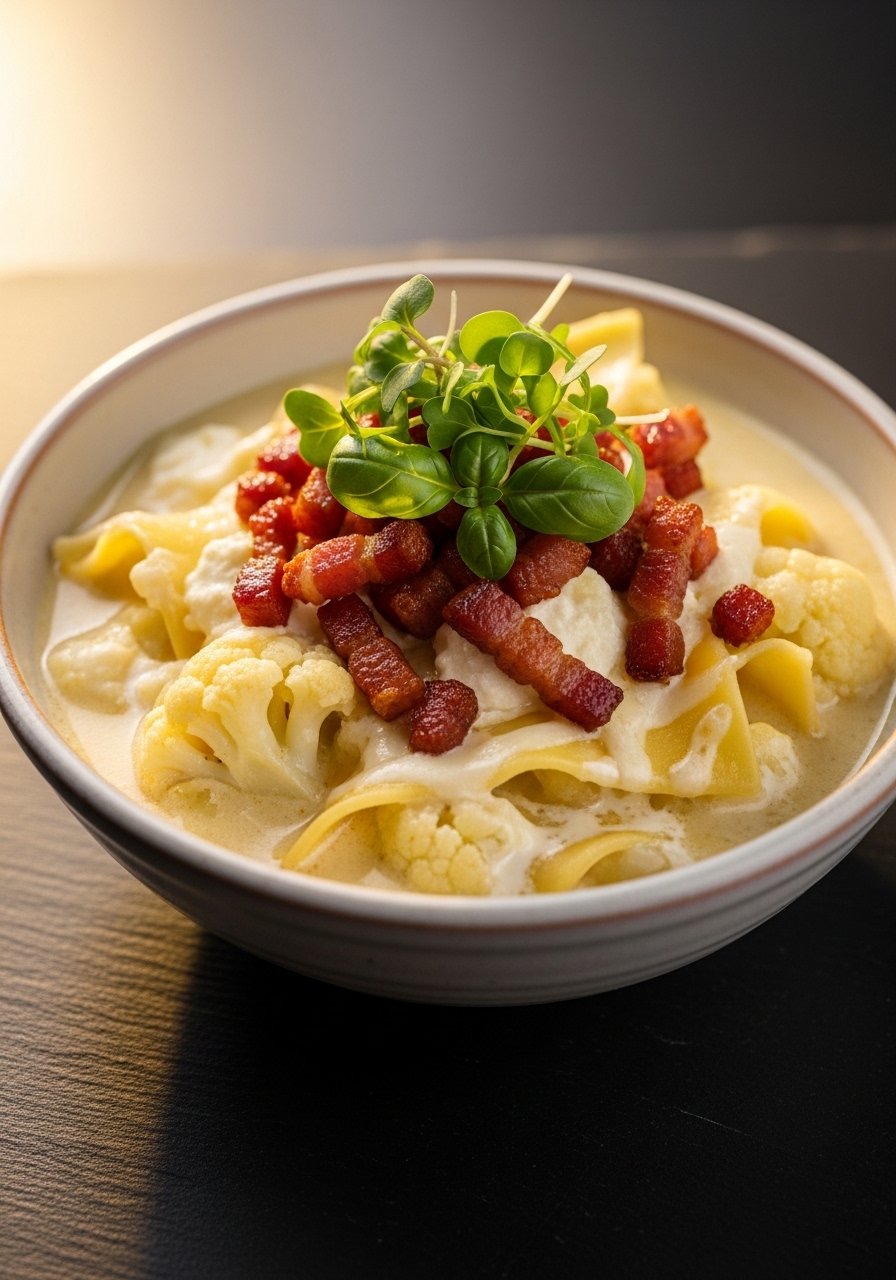Coconut milk and Thai basil introduce Southeast Asian flavors to the lasagna template. It’s aromatic, slightly sweet, and silky—an adventurous but balanced fusion.