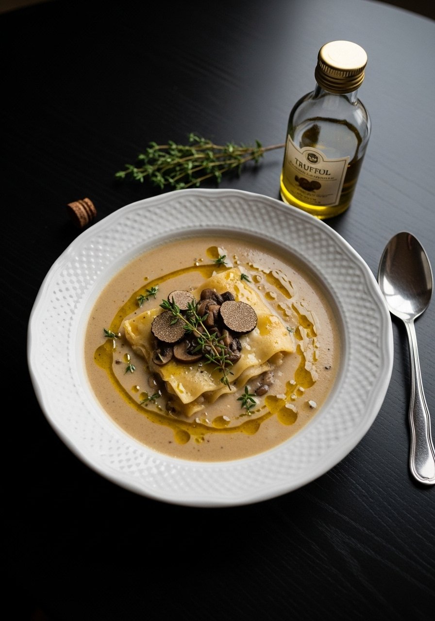 Earthy mushrooms and a light drizzle of truffle oil make this a sophisticated meatless option. It’s aromatic, deeply savory, and perfect for a cozy date night or dinner party starter.