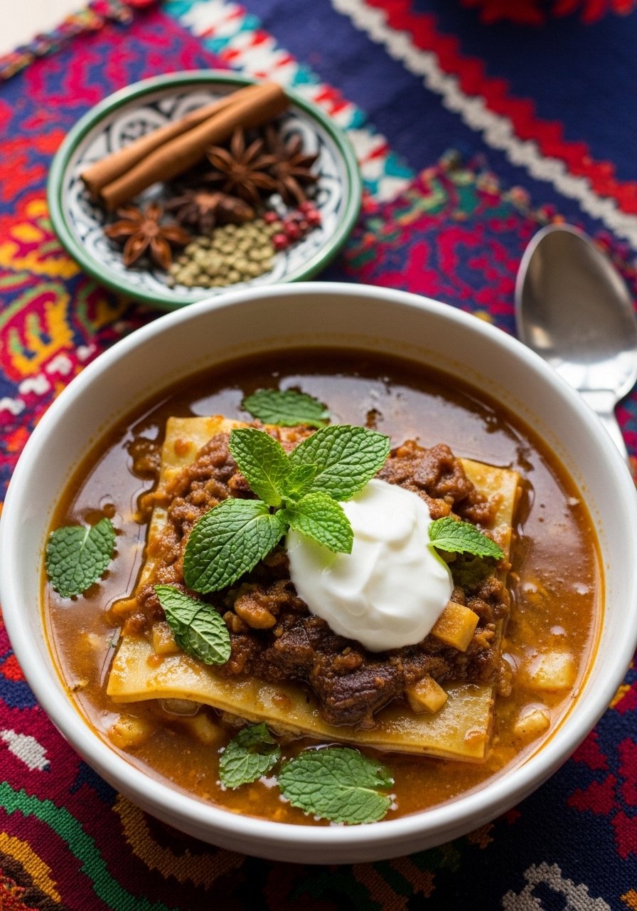 Warm Moroccan spices—cumin, coriander, cinnamon—give lamb lasagna soup a fragrant twist. A dollop of yogurt cools the heat, and mint brightens the dish for an unforgettable flavor profile.