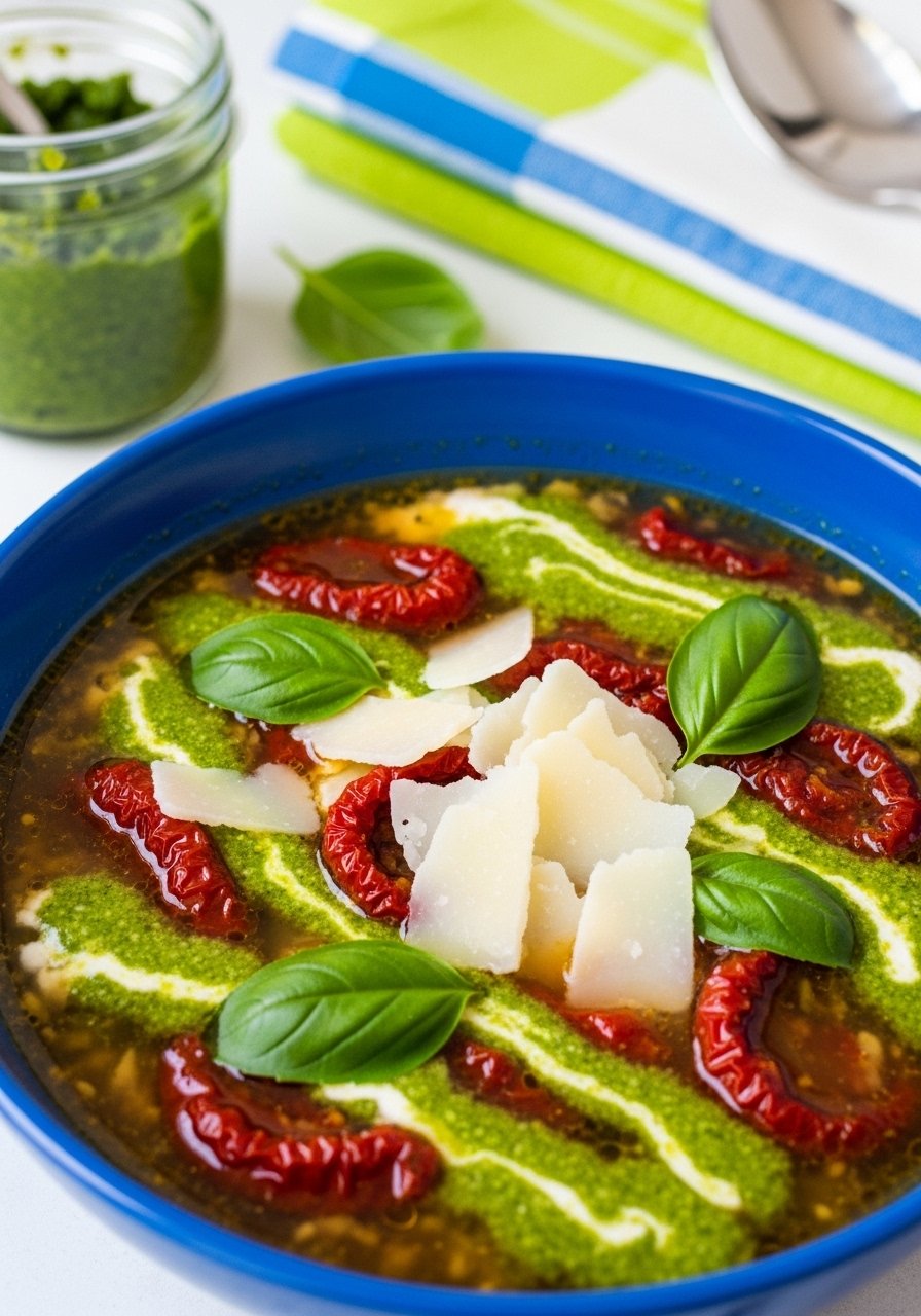 19. Pesto & Sun-Dried Tomato Lasagna Soup (Flavor Bomb)