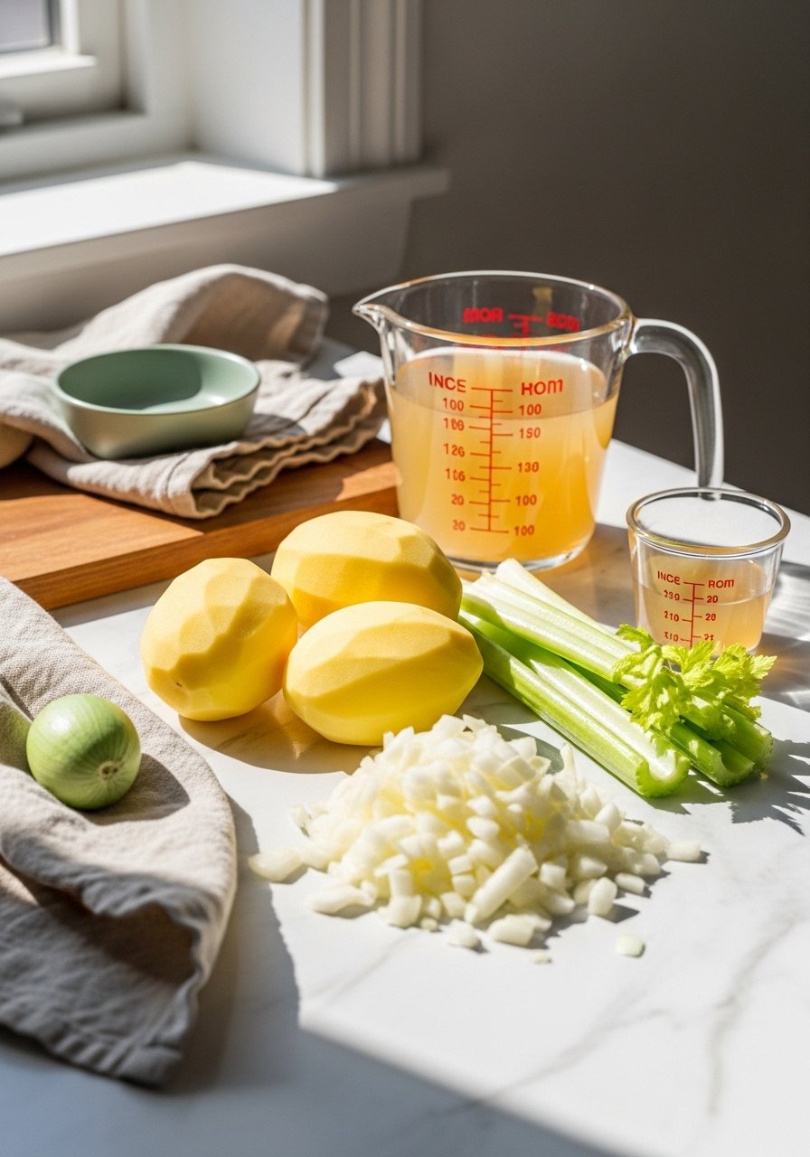 Quick tip: blanching potato pieces 3 minutes before simmering reduces starch release and helps texture when you freeze potato soup.