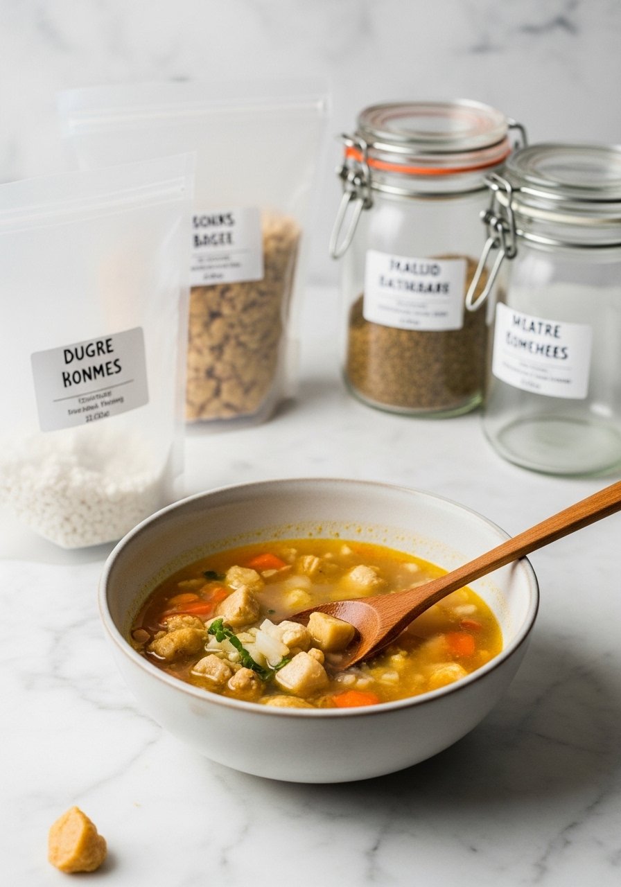 - Keep broth slightly concentrated (use 5–10% less liquid) so the soup isn’t watery after thawing.