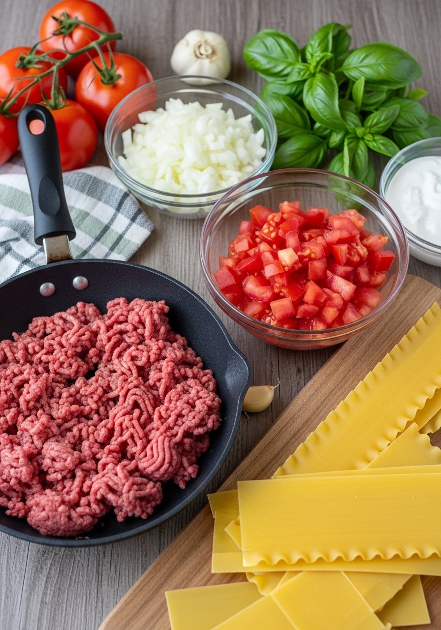 - Break 8–10 no-boil lasagna noodles into bite-size pieces. If you prefer, use oven-ready noodles or pre-cook regular lasagna noodles by 50% to avoid mush.