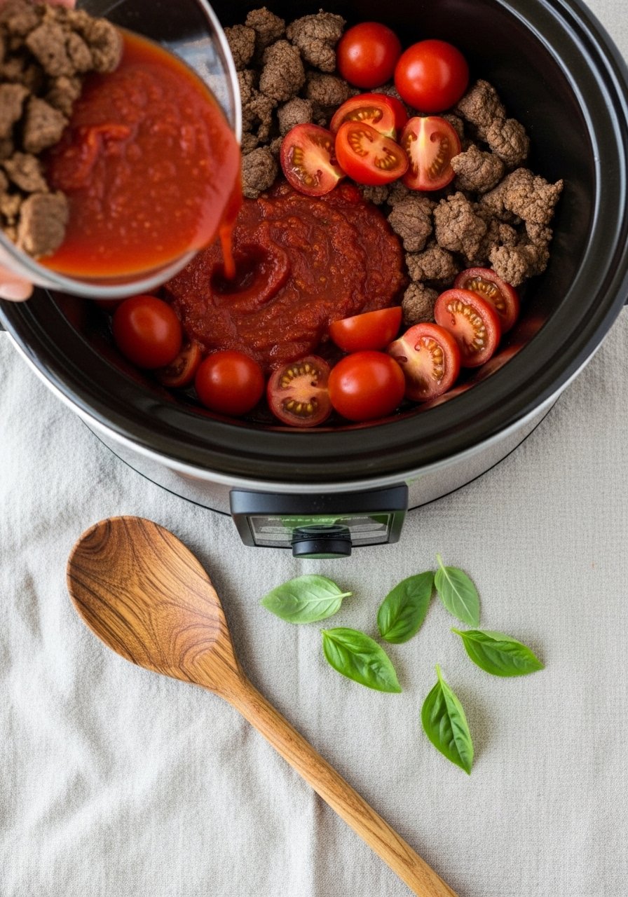 Assembling and Cooking the Lasagna Soup in a Crockpot (One-Pot Slow Cooker Method)