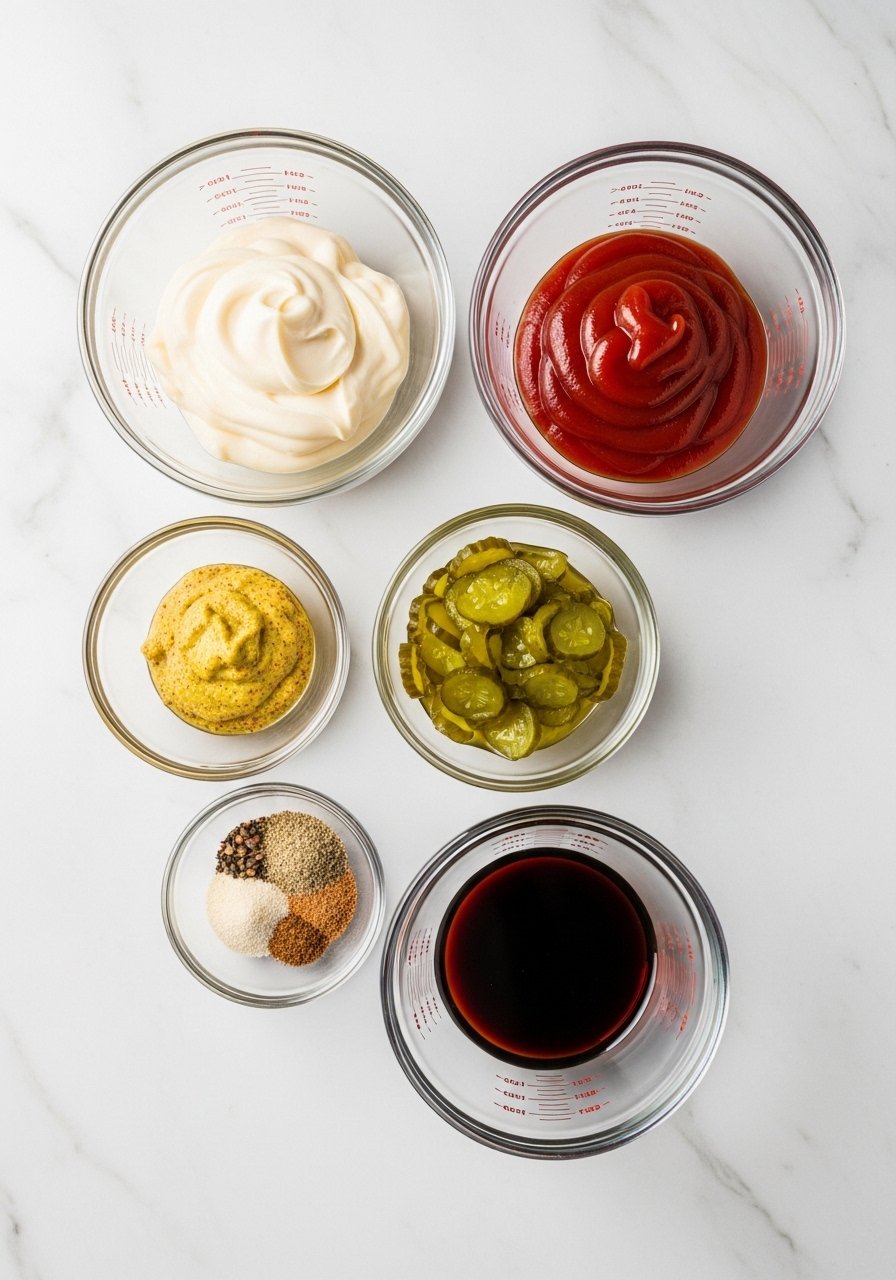 If the sauce separates after sitting, whisk vigorously or blitz with an immersion blender for a stable emulsion. Transfer to a squeeze bottle for cleaner burger assembly and prettier plating.