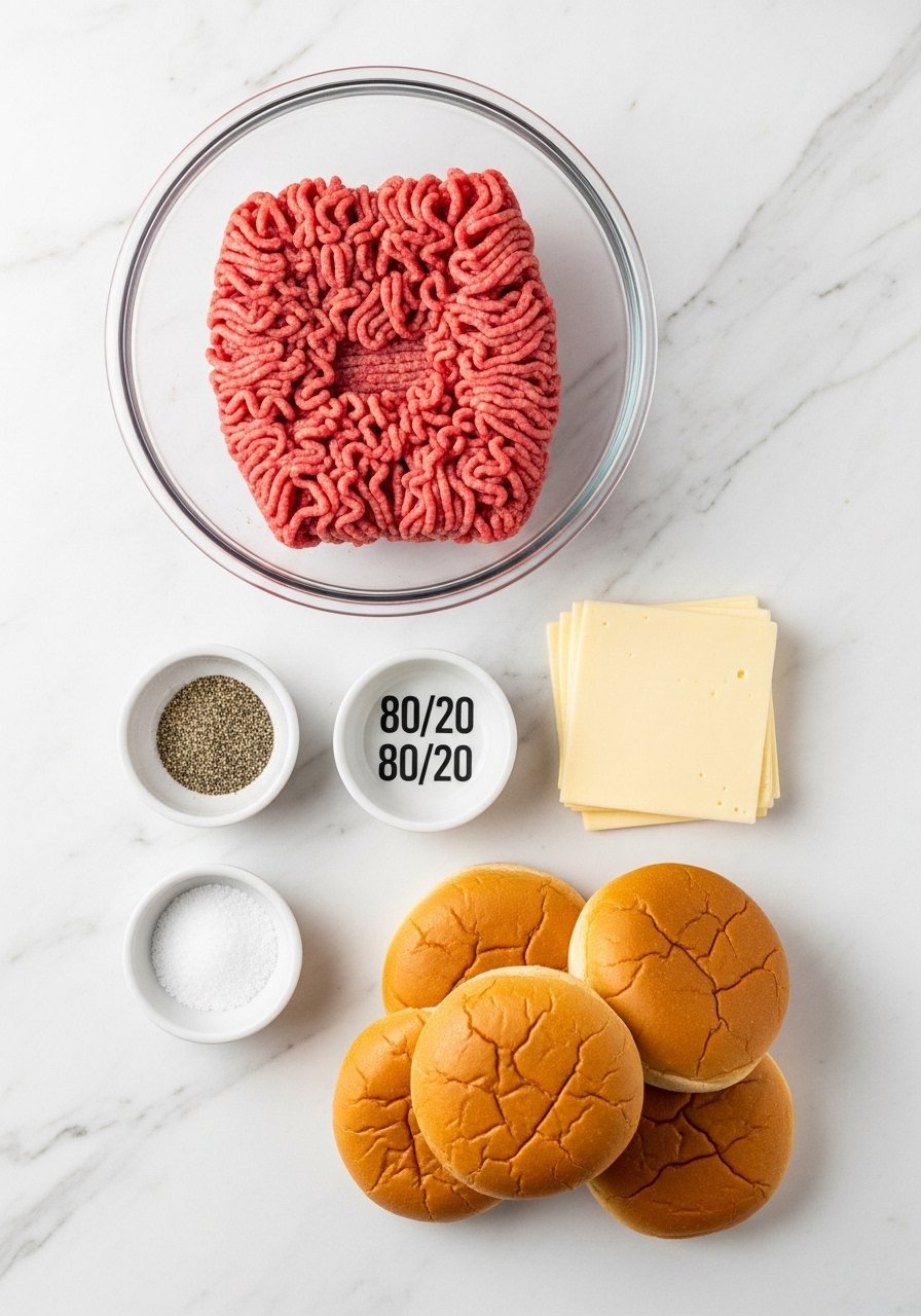 Start simple: use 80/20 ground beef for the best flavor and fat for crisping. Portioning is key to thin, even patties.