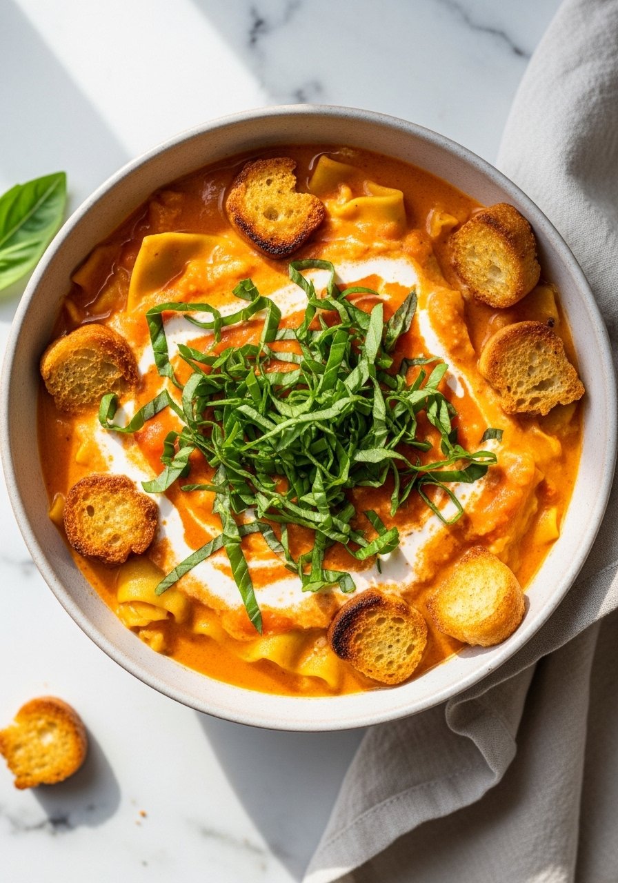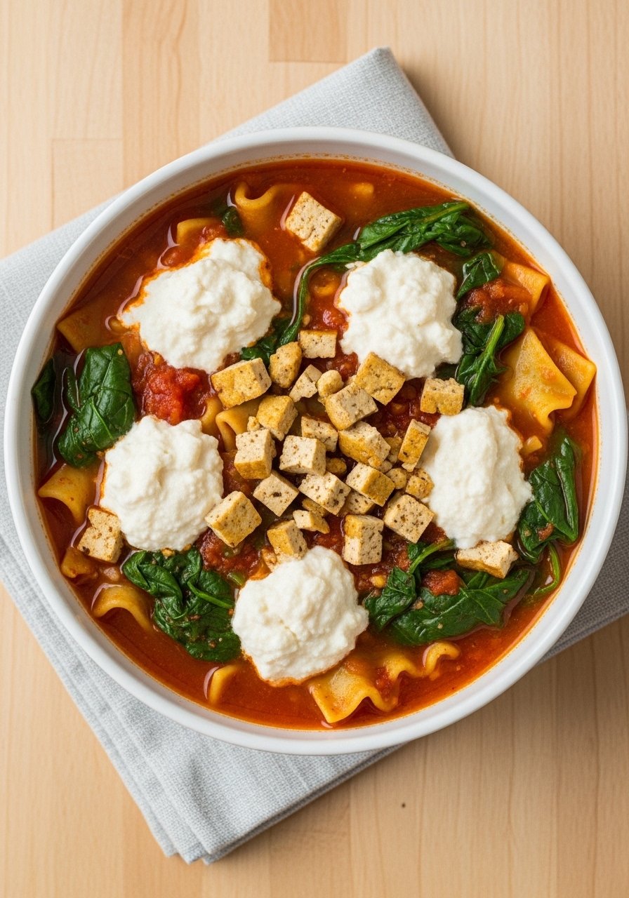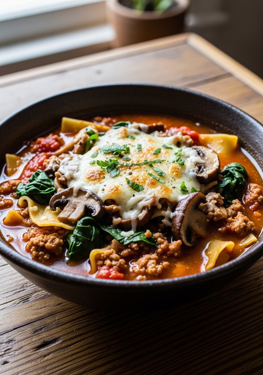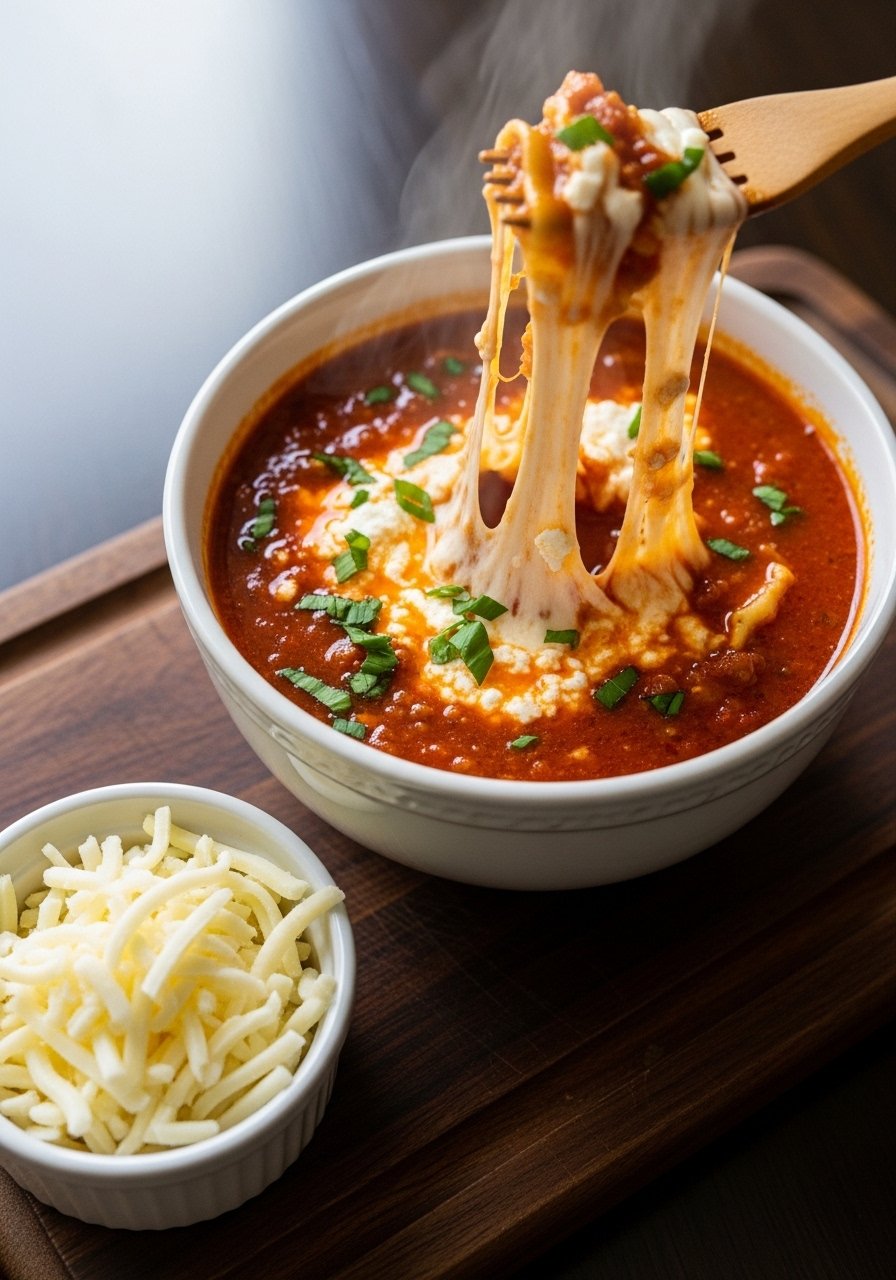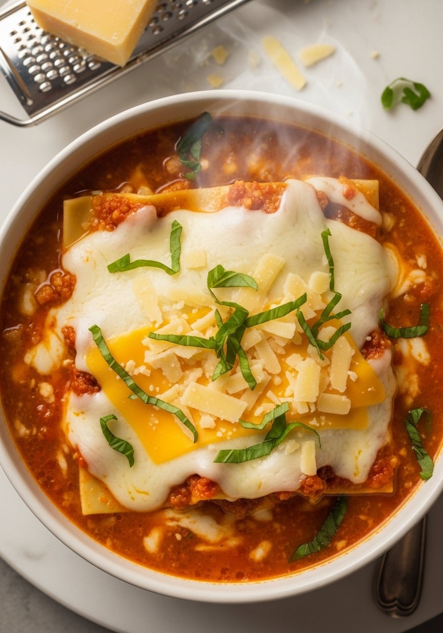 This ultra-cheesy rendition amps up mozzarella and adds a little cream for a silky finish. It’s a hit with cheese lovers and picky eaters. The broth is tomato-forward but rounded by cream and melted cheese, giving you that satisfying lasagna mouthfeel in spoonable form. Keep a box grater ready to shred fresh mozzarella for the best melt.