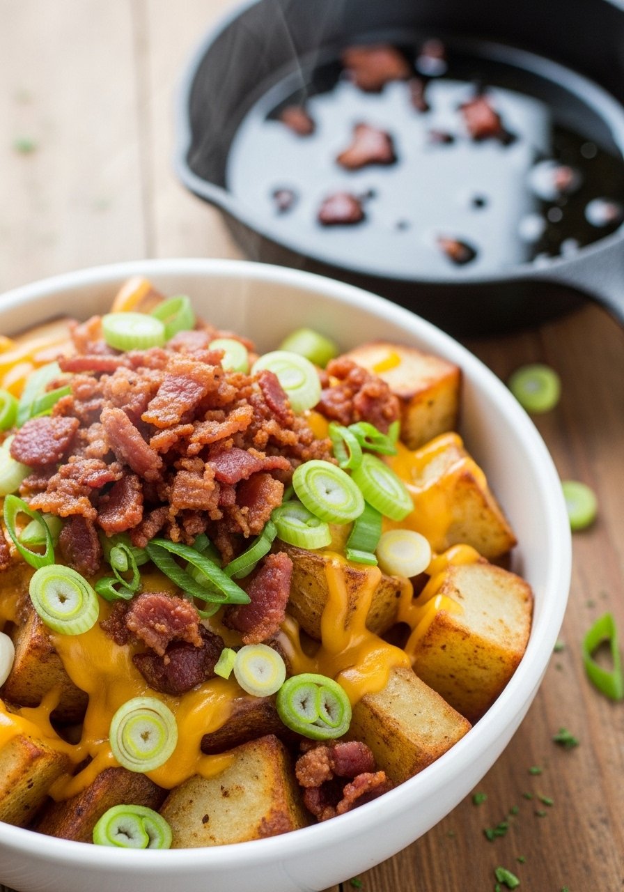 - Serve topped with remaining bacon and green onions.