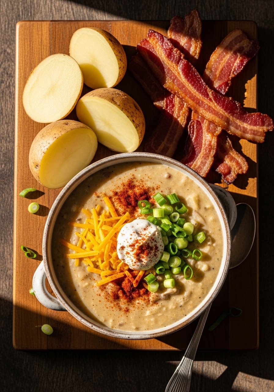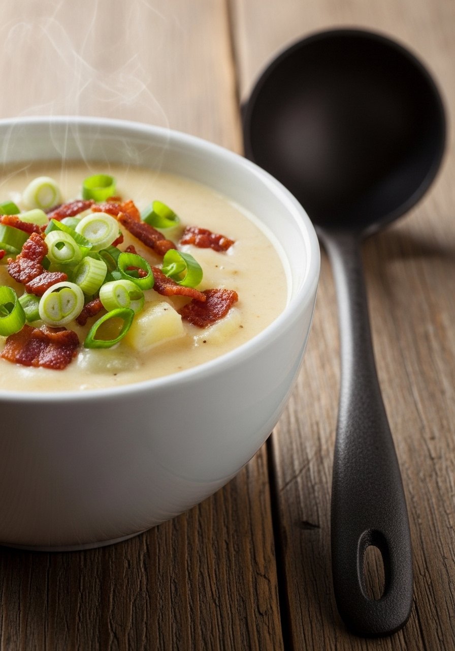 This is the cozy, creamy potato soup recipe your family will request on rainy nights. Smooth potatoes, sweet onions, and a touch of cream make a rich base that tastes like home. Texture is silky yet substantial, with crispy bacon on top for crunch. Great for picky eaters and weeknight comfort. I use an immersion blender to get the perfect consistency.
