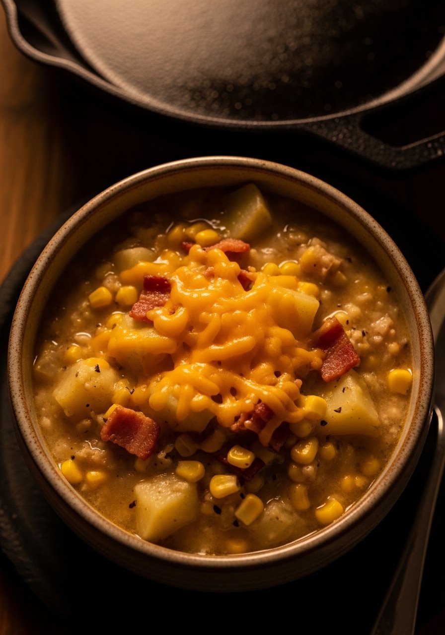 This chowder doubles down on comfort with sweet corn, smoky bacon, and melty cheddar. It's thick, spoonable, and ideal for chilly nights. Use a wooden spoon for stirring to avoid scraping your pot's surface.