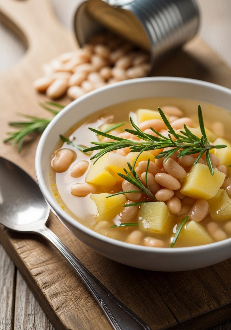 - Add potatoes, beans, broth, and rosemary. Simmer until potatoes are tender, 12–15 minutes.