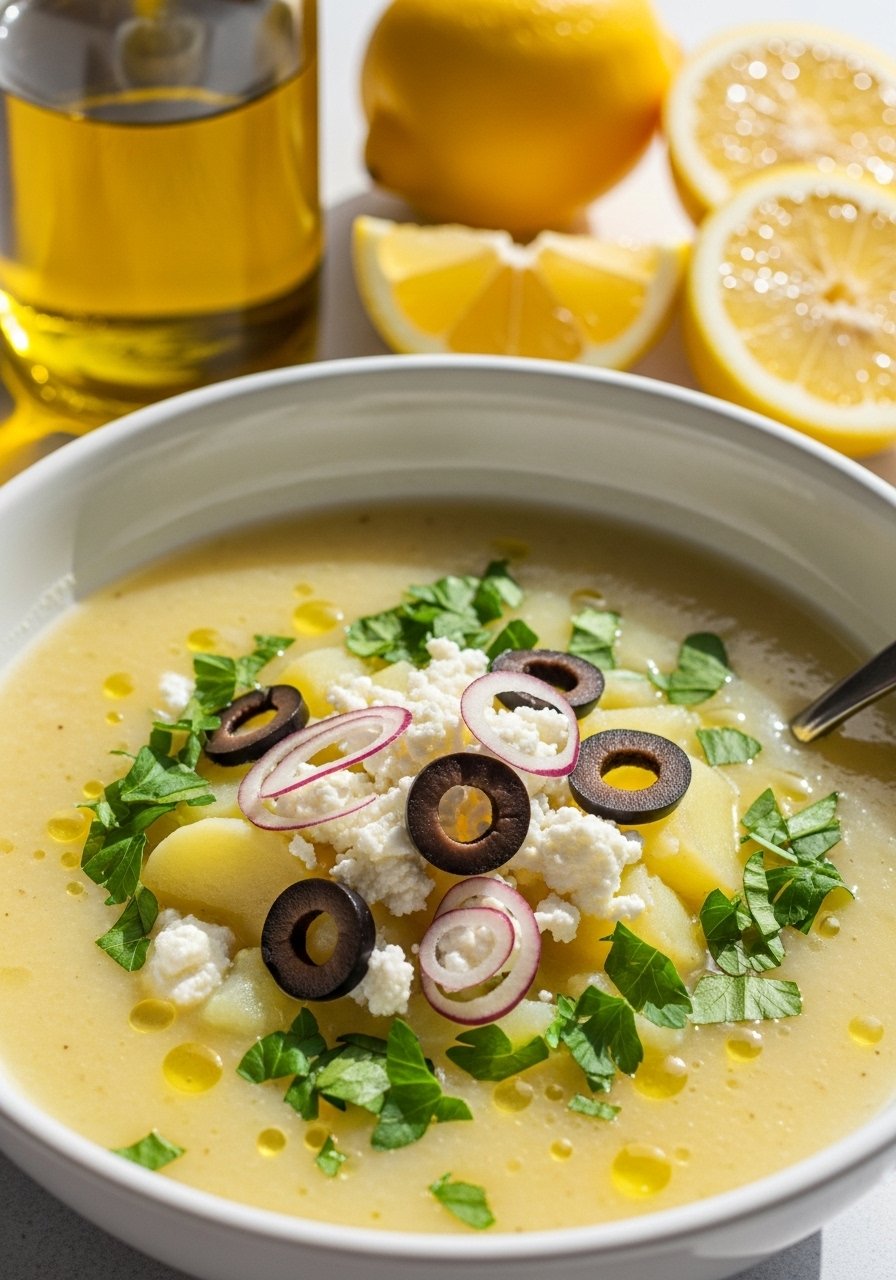 24. Mediterranean Potato Soup with Olives & Feta