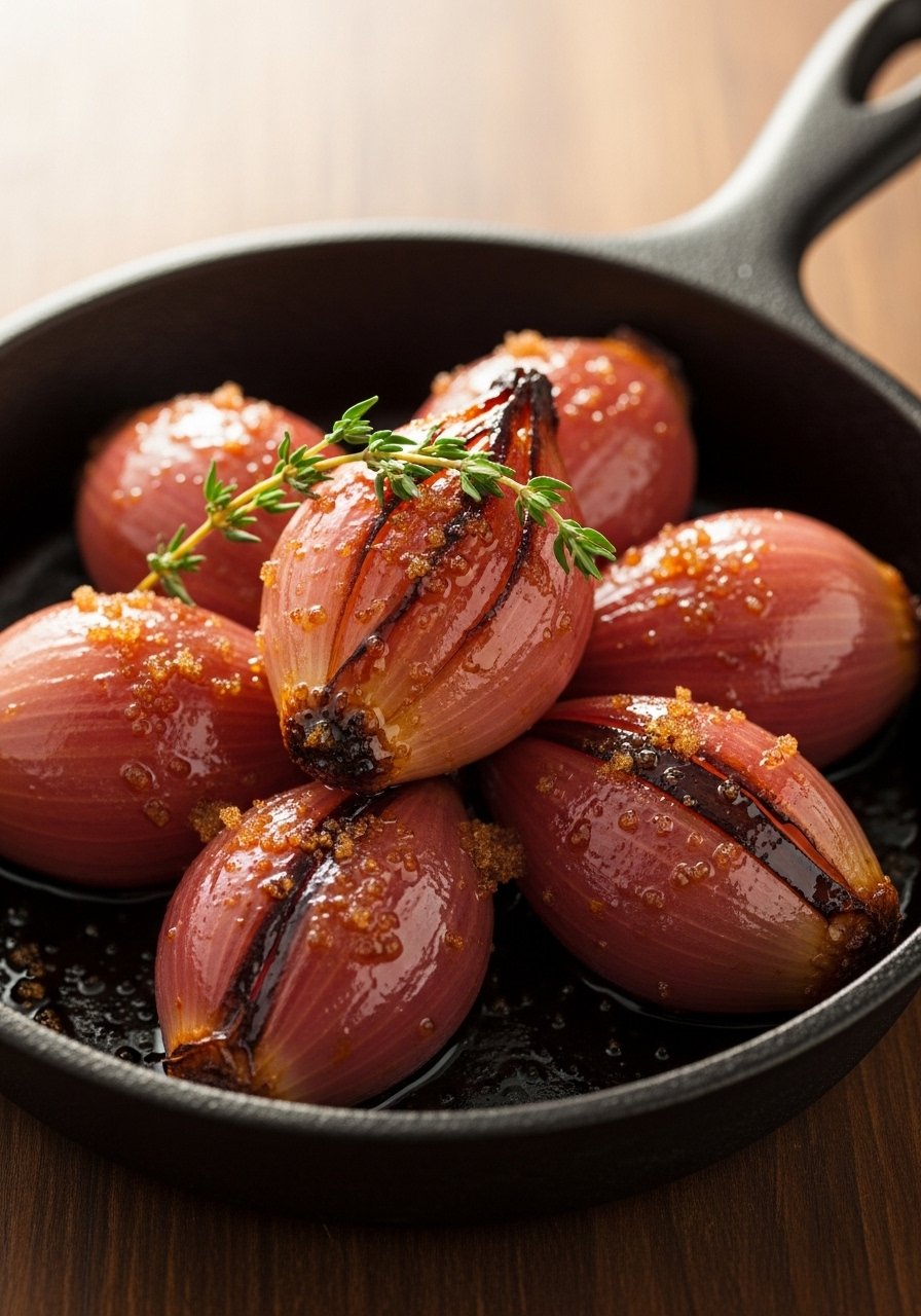 - Add brown sugar and thyme; cook 3–4 minutes until glossy.