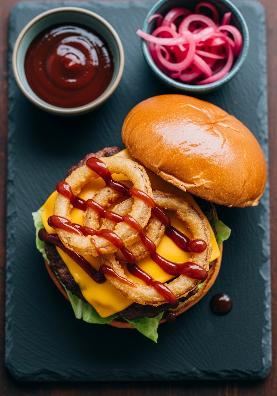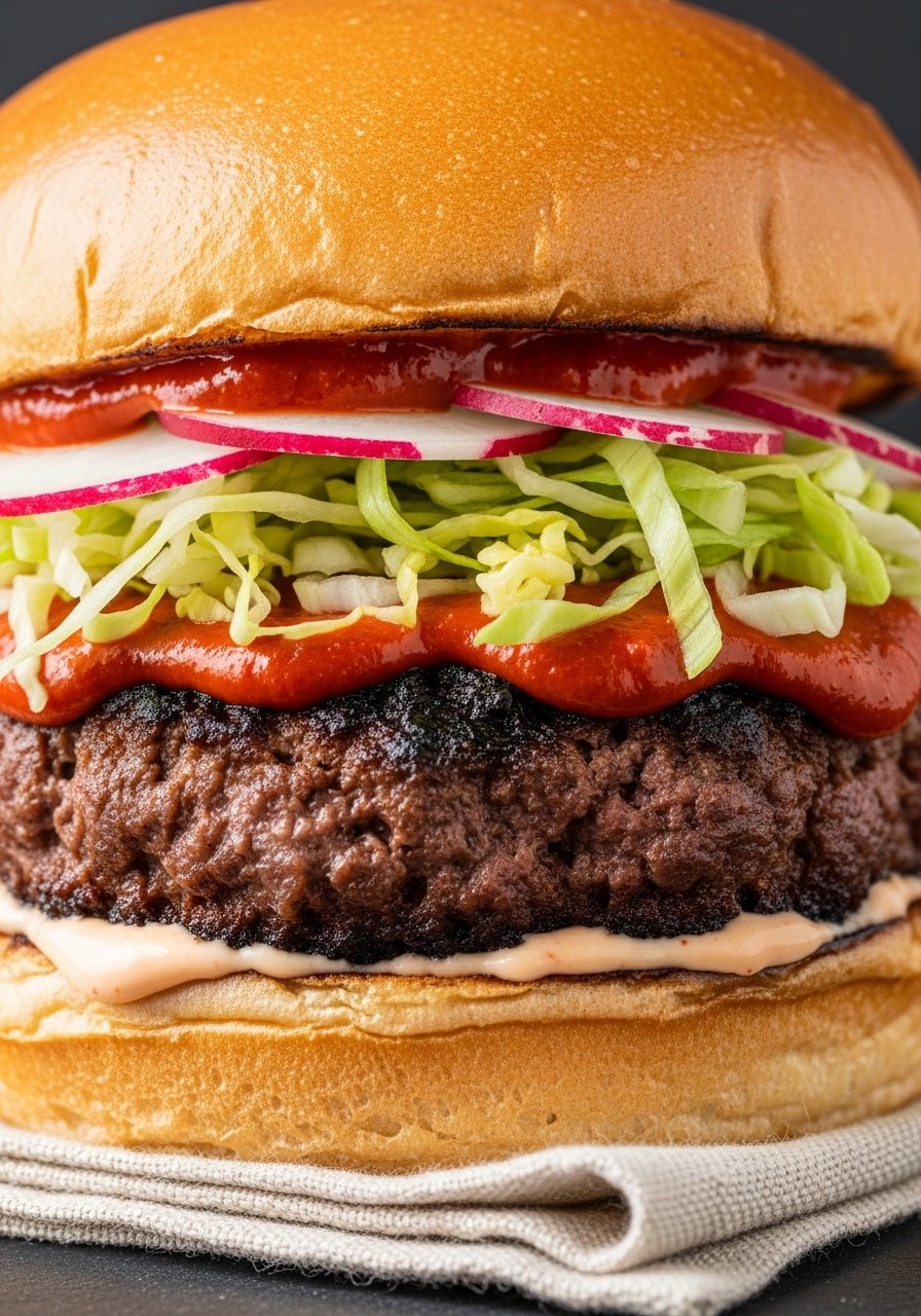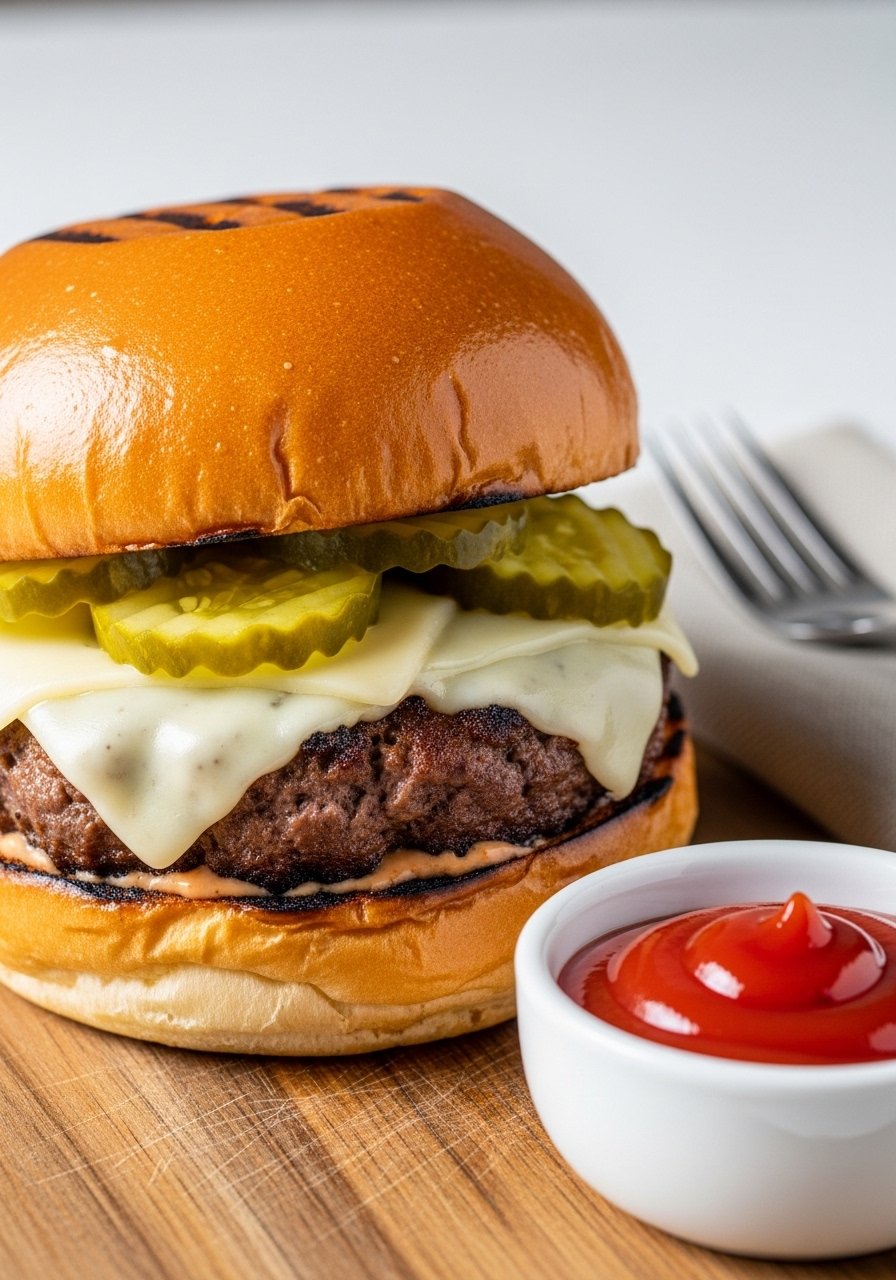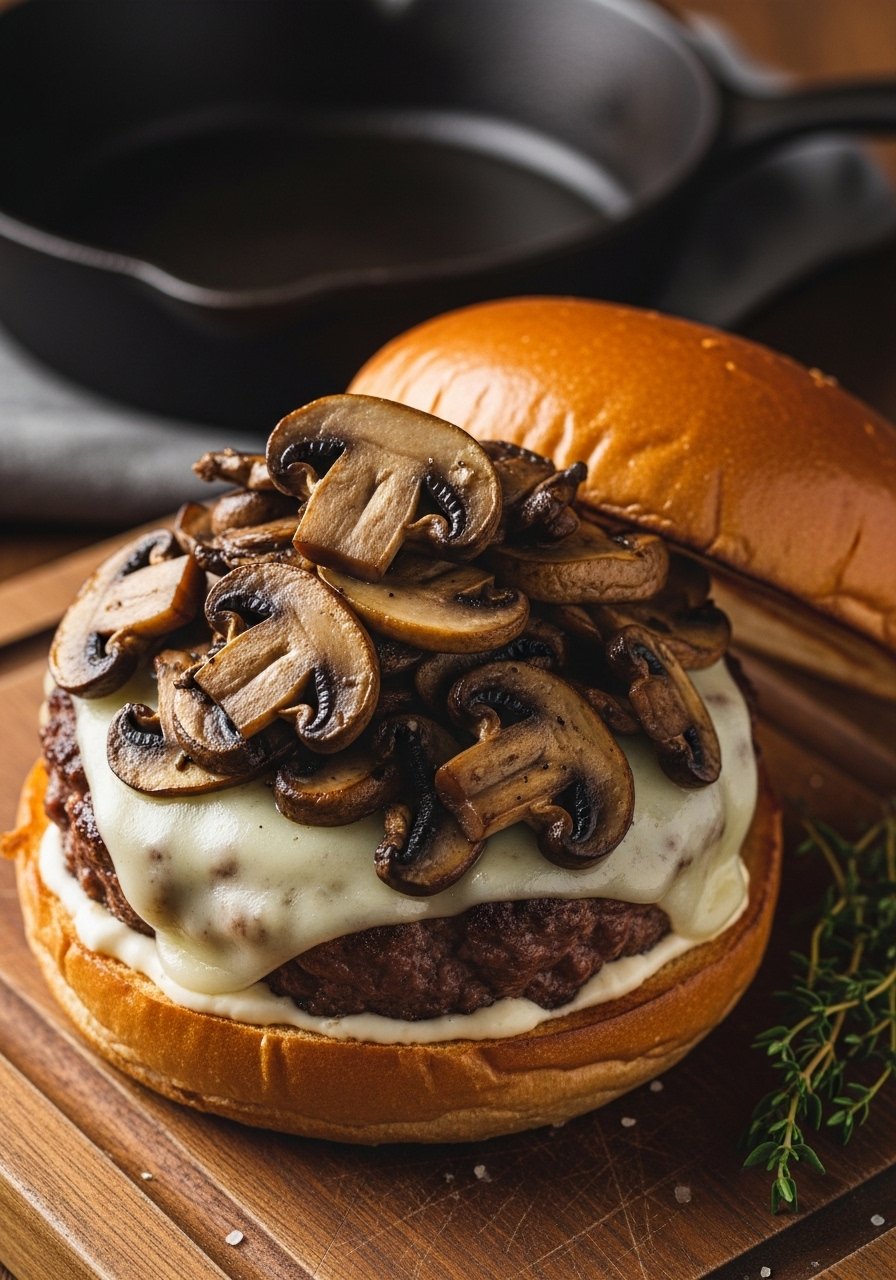 Earthy sautéed mushrooms and nutty Swiss add savory depth. The mushrooms are browned slowly so they stay juicy and flavorful, pairing perfectly with the burger’s caramelized edges. Great for mushroom lovers who want a cozy dinner.