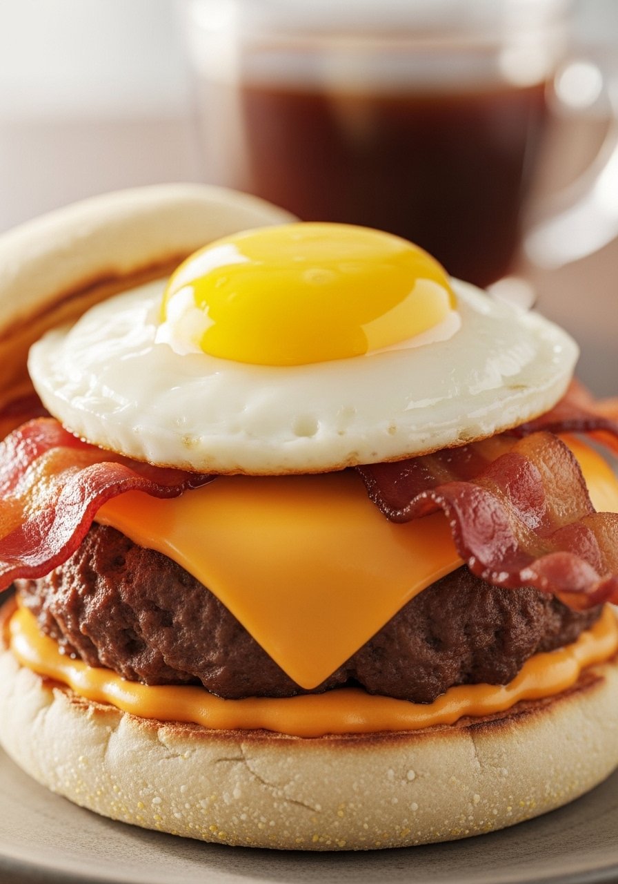 - Flip, top with cheddar and bacon, and cook 30–45 seconds until cheese melts.