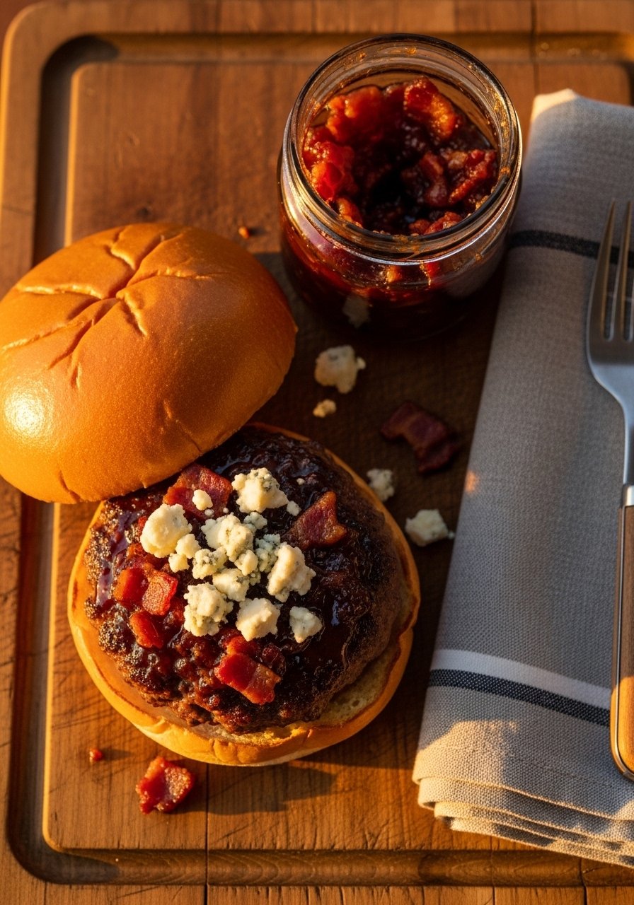 Bacon jam gives a smoky-sweet backbone that pairs beautifully with tangy blue cheese. The jam’s sticky texture complements the crisp edges of a smash patty, while the blue cheese adds sharp, creamy pops.
