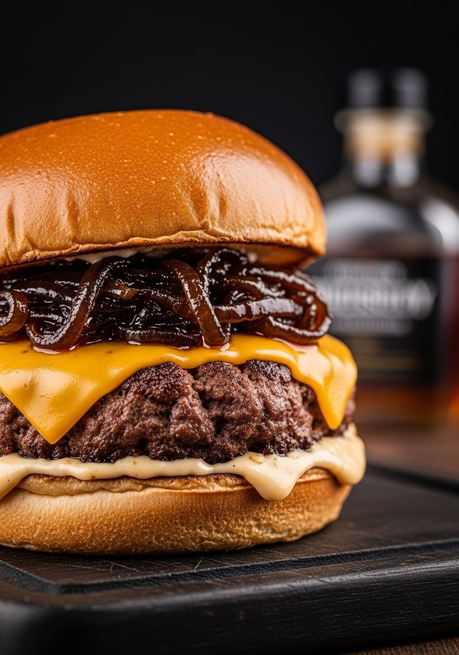 Bourbon adds a deep, boozy caramel note to onions, pairing perfectly with smoky cheddar for a rich, robust burger. This combo is decadent and great for cozy dinners.