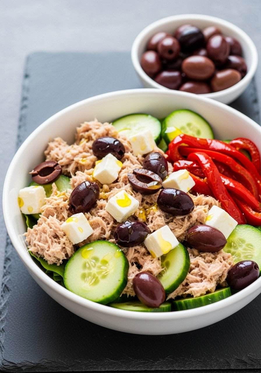 3. Mediterranean Olive & Feta Tuna Salad (tuna salad toppings)